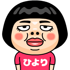 ひより(ヒヨリ)はとってもブスな女の子。自分の名前入りピンクTシャツを着るちょっと痛い子。自虐的だけどおはようからおやすみまで使える万能な名前スタンプです。