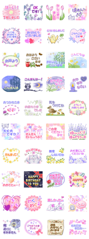 絵の色彩がとっても美しいです。「ごちそうさまでした」のスタンプは、相手への好感度高そうなのでまたおごって貰える効果あるかも。
