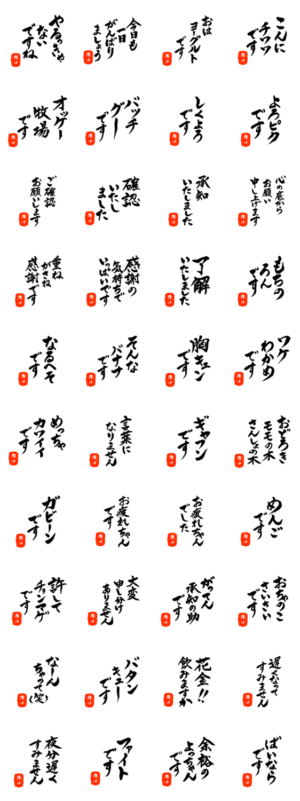 廣中さん用死語入り筆文字敬語 スタンプ画像一覧