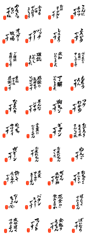 割田さん用死語入り筆文字敬語 スタンプ画像一覧