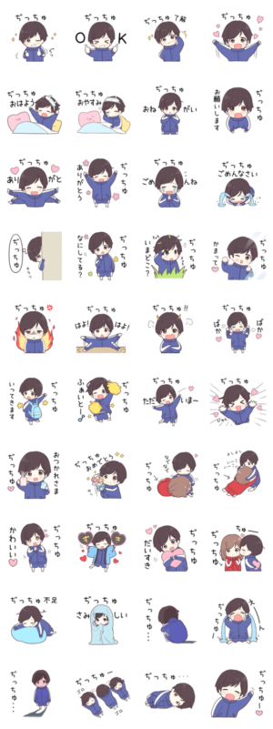 【ぢっちゅ】に送る専用のジャージくんスタンプ第1弾です。大好きな「ぢっちゅ」に呼びかけます。ジョイネット【男子の呼びかけスタンプ】5 より発売