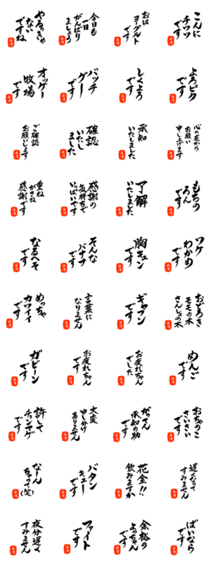奥澤さん用死語入り筆文字敬語 スタンプ画像一覧