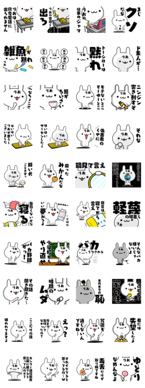 りおサン.リオさん.りおタン.りおぽん.りおちんが無難に使える定番ウサギスタンプがさらに毒舌で使いやすい!煽り,罵倒,謝罪,忠告,罵り,応援などに愛あるスタンプを♡