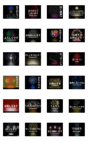 毎日使える!動く『想い-in-花火』打ち上げ花火のスタンプです。日本語英語併記なので世界中のお友だちに送れます。[着せかえ]も販売中!