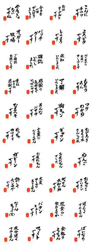 江刺家さん用死語入り筆文字敬語 スタンプ画像一覧
