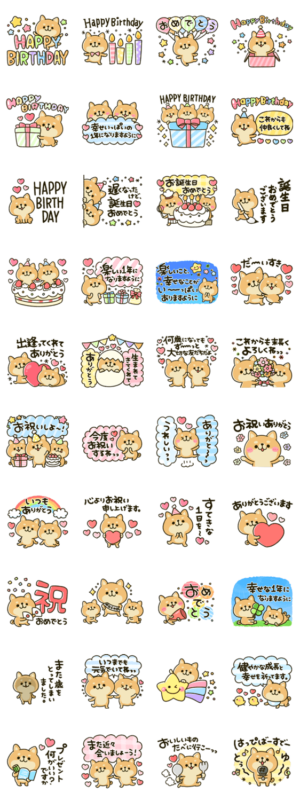 豆柴日和の柴犬ちゃん達が大切な人のお誕生日を可愛いくお祝いします♡ お祝いする側・される側、どちらも使えるスタンプが揃ってます♡