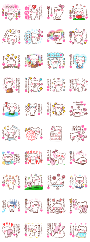 大好きなともちゃん/ともこ/ともみ/ともや/ともゆき/ともひろ/ともえ/とも/とっ/とー/ちゃん/くん/へ送る名前スタンプ/カップル友達へ/ほめる/優しい/応援/言葉/作:さあやさあや❤ より発売