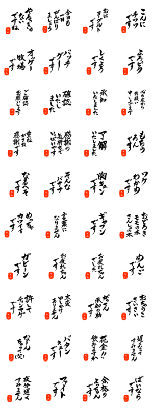 丸山さん用死語入り筆文字敬語 スタンプ画像一覧