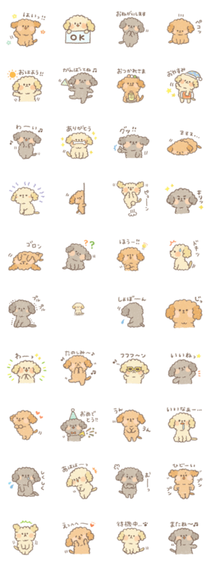 ふわふわモコモコなトイプードルのゆるいスタンプです。kazunoco より発売