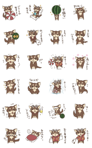 チワワ(チョコタン)のマナちゃん【夏】 スタンプ画像一覧