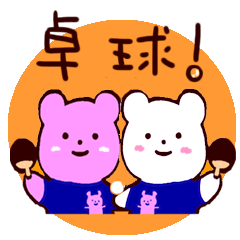 卓球部スタンプ。ピンクのくま「ピンクマ」としろくまが所属しています。たのしくがんばるかわいい卓球部員におすすめです。