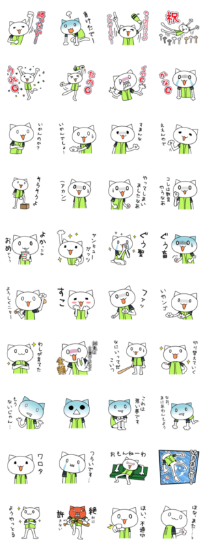 なんだかんだ野球好き猫スタンプJ。東京とかでツバメなんかが好きなファンに使ってもらいたいネット用語とかのやつです。