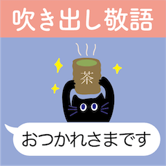 敬語の吹き出し黒猫スタンプです。毎日使える無難でシンプルな挨拶やお礼など。ビジネスにも。礼儀正しいかわいいくろねこです。日本語の丁寧語。敬語ネコ。ふきだし。