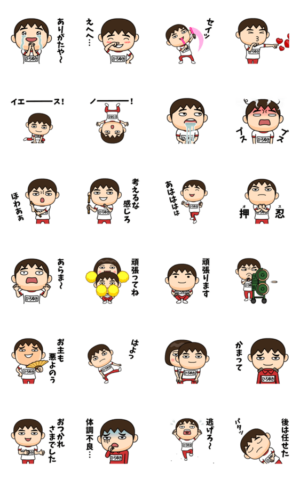 ひろゆき(ヒロユキ)が使う芋ジャージ男子の名前スタンプ第8弾!上着を脱ぎ捨て、ブレイクダンスやカンフーのヌンチャクなど、アクロバティックな動きを披露します!