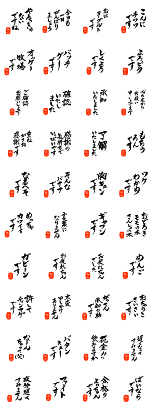 森山さん用死語入り筆文字敬語 スタンプ画像一覧