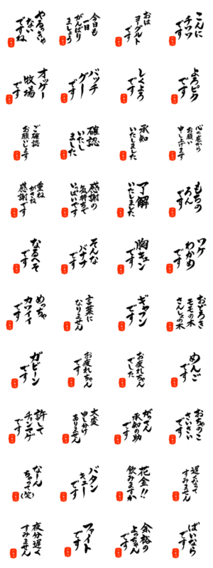 八木沼さん用死語入り筆文字敬語 スタンプ画像一覧