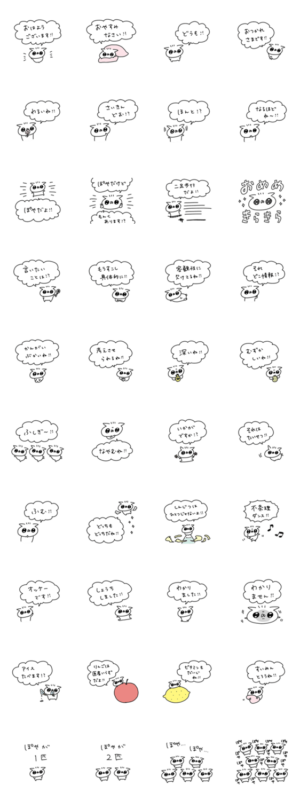 うさぎ帝国のぽや その2 スタンプに書いてある文字一覧