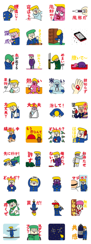傷付いた現代人に送る、ちょっぴりケガの多い中学生のスタンプです。DOKURO RECORD より発売
