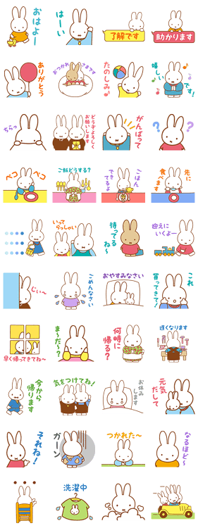 家族で使えて便利です。ミッフィーの落ち着いた表情が相手や自分のテンションを考えずに使えます。