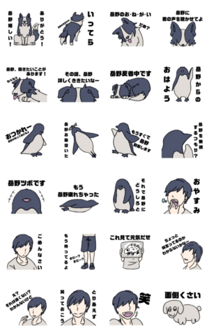 岳野さんが使えるスタンプです。素直なボーダーコリーと、ちょっぴりくせのあるペンギンがいい味出してます。累 より発売
