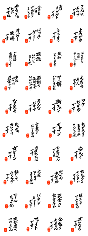 松山さん用死語入り筆文字敬語 スタンプ画像一覧