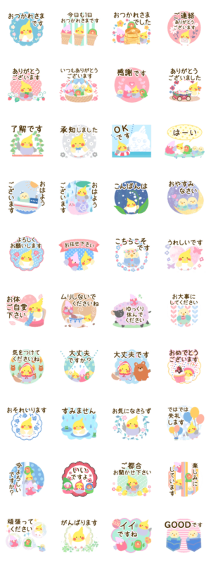 日常でよく使う丁寧な言葉を大きな文字でインコちゃんが伝えてくれる敬語スタンプの新作です。 オカメインコ多めです!