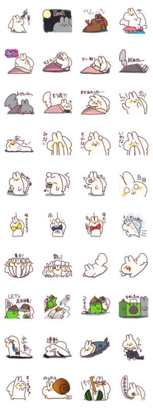 うさぎと犬のハーフ、きなこもちのスタンプ第5段。なつっぽいのから、そうでもないものまで揃えてみました。かにこう より発売