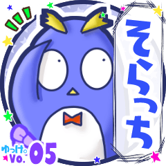 ゆっけ。が贈る【そらっち】用名前スタンプ05です。友達や恋人とのやりとり、グループの連絡にぜひ。《ゆっけ。のアニぱ!》05「てきとーなペンギン」のスタンプです。