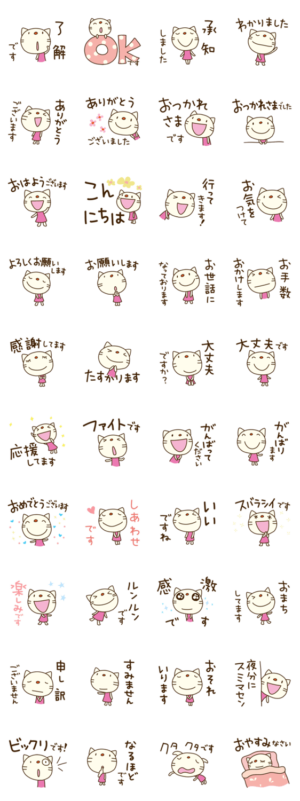 「てるてるねこ」敬語編。「承知しました」から「申し訳ございません」まで。丁寧な言葉使いで、メッセージを届けよう。家族、学校、お仕事でも。Mami / エストループ より発売