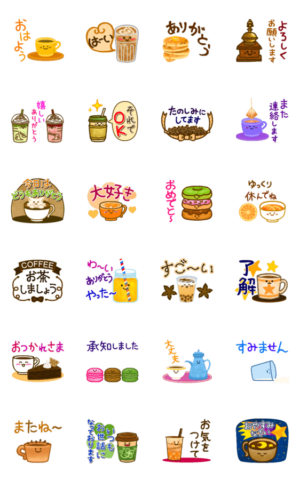 大人可愛いおしゃれなカフェモチーフのスタンプ。タピオカ、コーヒー、紅茶、お菓子が可愛く動く!
