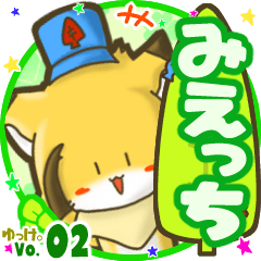 ゆっけ。が贈る【みえっち】用名前スタンプ02です。友達や恋人とのやりとり、グループの連絡にぜひ。《ゆっけ。のアニぱ!》02「おちゃめなきつねっこ」のスタンプです。ゆっけ。のおみせ⭐️1F おなまえひろば⭐️ より発売