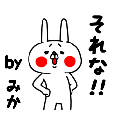 うぇーいうさぎの全力スタンプ第10弾!!全力でうざい全力でおちょくる「ミカ」専用名前スタンプ。かわいいウサギで使いやすいデカ文字タイプ。cosotto より発売