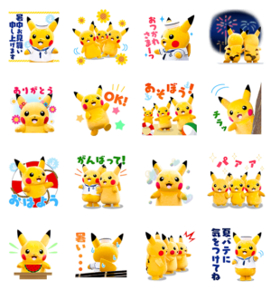 ポケモンのLINEスタンプにピカチュウ大量発生チュウ!夏休みに重宝する?!スタンプをお届けします。(株)ポケモン より発売