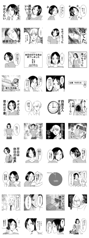 日本イチ堂々とサボる女、サボり先輩のLINEスタンプ登場!これを使えば上司もサボり容認間違いなし♪地球のお魚ぽんちゃん より発売