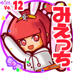 ゆっけ。が贈る【みえっち】用名前スタンプ12です。友達や恋人、グループでのやりとりにぜひ。《きぐるみじょし》01「うさぎなミコちゃん」と親友の「ガルうさ」です。