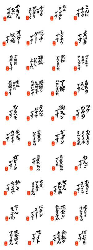 月森さん用死語入り筆文字敬語 スタンプ画像一覧