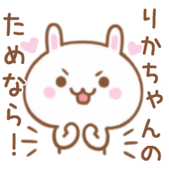 大切な「りかちゃん」へ送れる、ウサギのあだ名・名前スタンプです。ほめる言葉も。りか/リカ/梨夏/里香/梨加/梨夏/梨花/りかこ/利加/利華/梨佳/rika