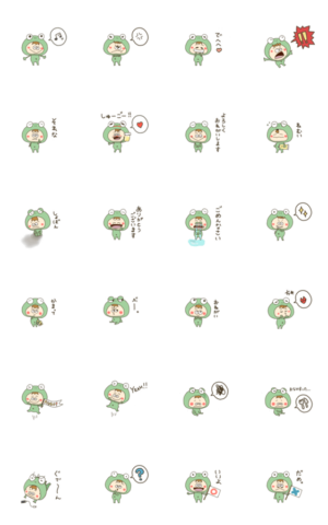 かわいいかえるのこ スタンプに書いてある文字一覧