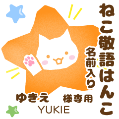 ゆきえ様用ねこの敬語はんこ挨拶[ユキエ/幸栄/之恵/幸衣/雪笑/由愛/千江/行慧/倖亞/章雅/由起枝/弓希絵/優希重/悠紀依/友樹恵]お名前入り印鑑/猫判子ハンコ姓苗字なまえお名前入りスタンプ専用★アイシスデザイン株式会社 より発売
