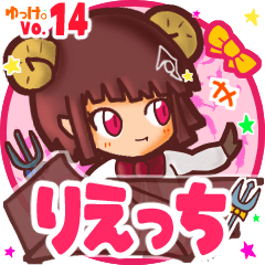 ゆっけ。が贈る【りえっち】用名前スタンプ14です。友達や恋人とのやりとり、グループの連絡にぜひ。《きぐるみじょし》03「デビルなしーちゃん」です。