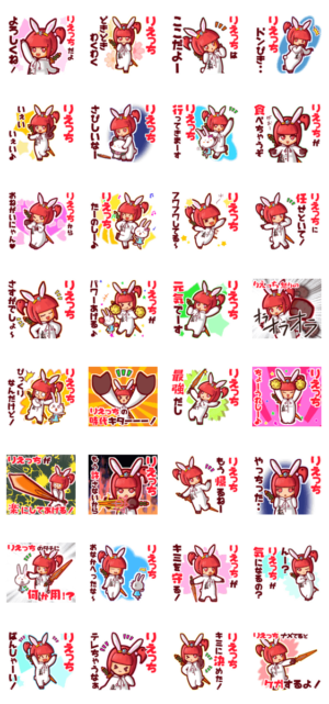 ゆっけ。が贈る【りえっち】用名前スタンプ12です。友達や恋人、グループでのやりとりにぜひ。《きぐるみじょし》01「うさぎなミコちゃん」と親友の「ガルうさ」です。