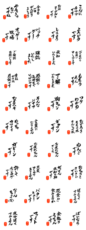 岡山さん用死語入り筆文字敬語 スタンプ画像一覧
