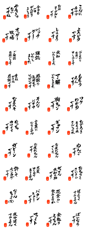 二瓶さん用死語入り筆文字敬語 スタンプ画像一覧