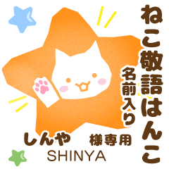 しんや様用ねこの敬語はんこ挨拶[シンヤ/真也/臣矢/慎也/伸也/信夜/辰椰/清冶/進彌/晋哉/心八/慎弥/新屋/榛谷/紳也/慎耶/伸哉]お名前入り印鑑/猫判子ハンコ姓苗字なまえお名前入りスタンプ専用★アイシスデザイン株式会社 より発売