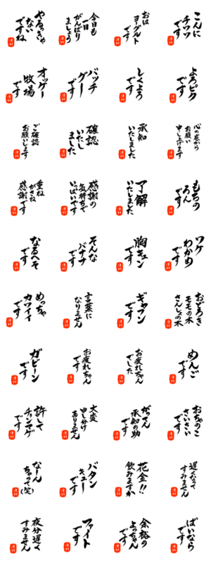 津村さん用死語入り筆文字敬語 スタンプ画像一覧