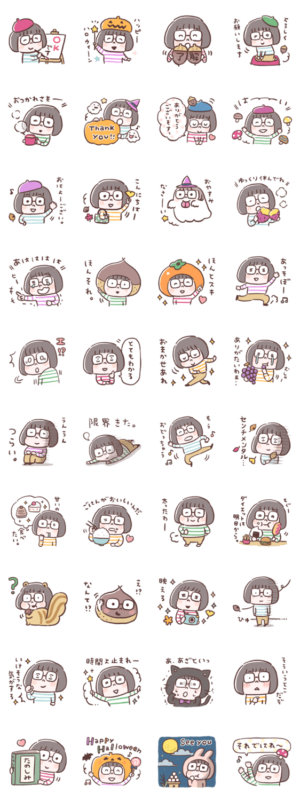おかっぱめがねのスタンプ/秋 スタンプ情報