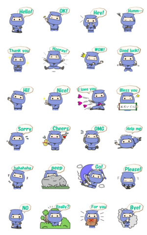人気の忍者スタンプの英語バージョンです。トリプルエーテクノロジーズ RYO より発売