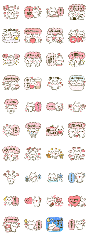 毎日使える♡顔文字うさぎのガーリーな日常スタンプです♡ぴよたぬき より発売