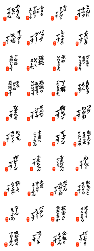 桐山さん用死語入り筆文字敬語 スタンプ画像一覧