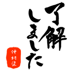仲村渠さん用真面目な筆文字のスタンプ。敬語丁寧語で仕事でもバンバン使える。判子(はんこ)付きで見た目も鮮やか!